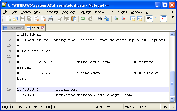 Cách này sẽ chuyển liên kết của chương trình IDM sẽ chuyển hướng tợi host local của máy(127.0.0.1), tất nhiên host này sẽ không có dịch vụ(server) cập nhật phiên bản của IDM nên không thể auto update được.